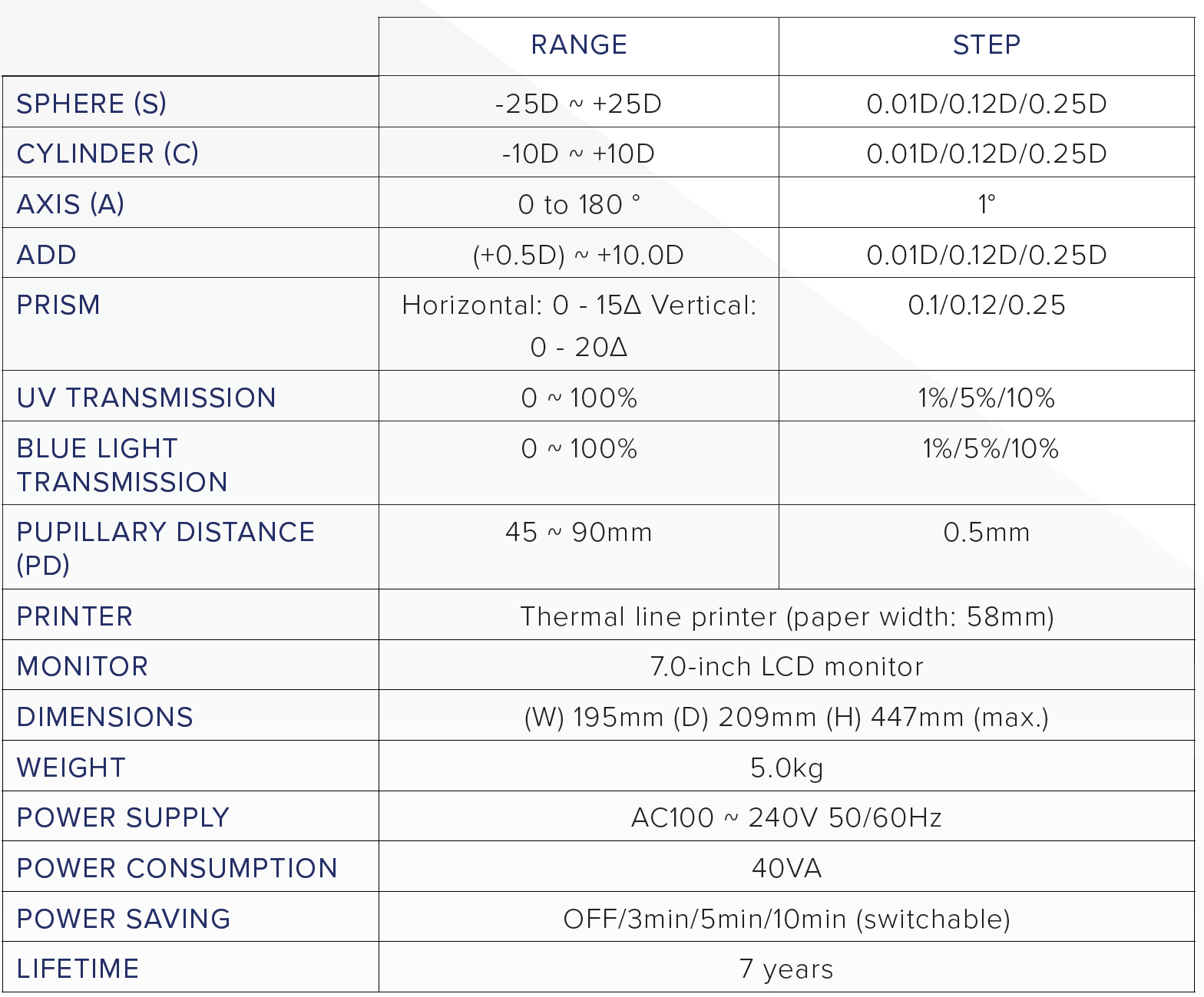 - UV transmittance measurement: The AL 2000 offers precise UV transition measurement at 375nm and blue light transition measurement at 420nm, ensuring accurate assessment of lens protection. Guarantee optimal eye protection against harmful UV rays and high-energy blue light, providing enhanced visual comfort and safety for users.