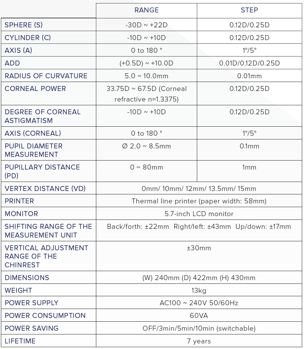 - Pupil Diameter Measurement: Pupil diameter is taken automatically during objective measurement and Scotopic Pupil Size (SPS) measurement can be taken without objective measurement.